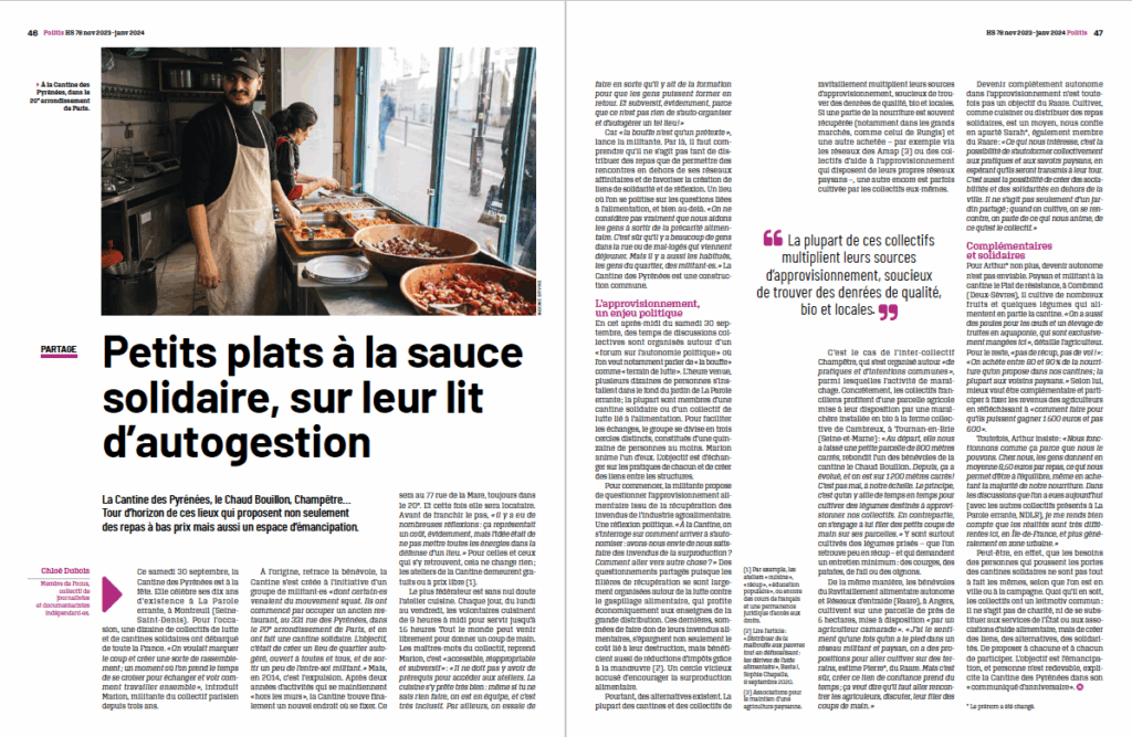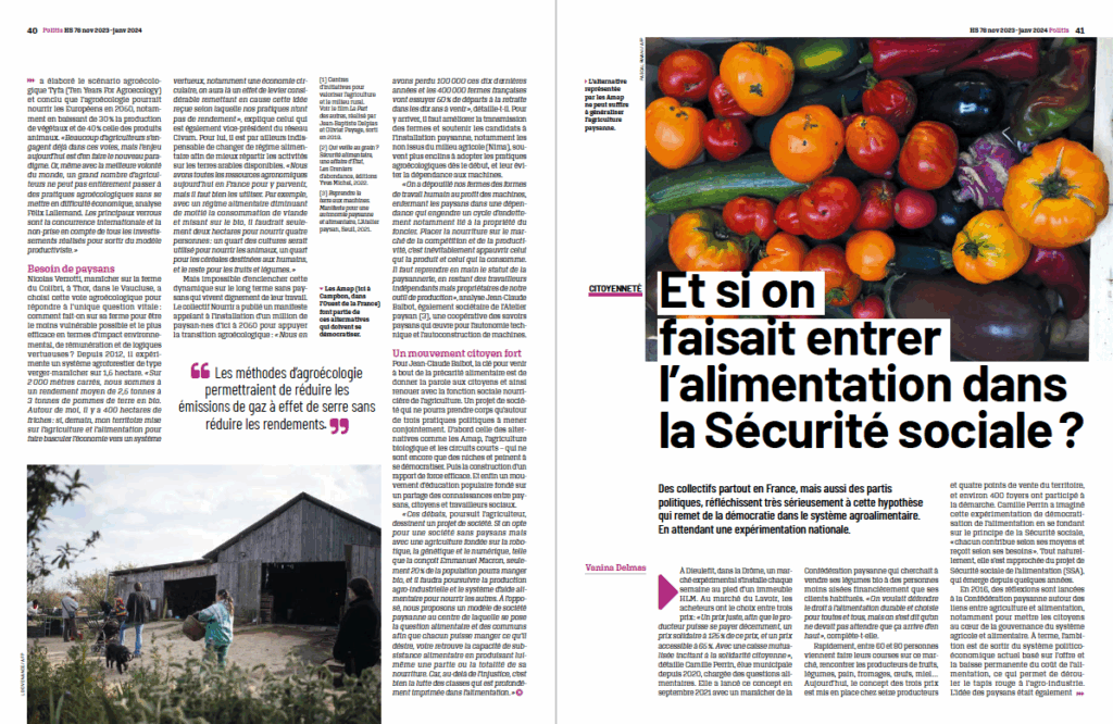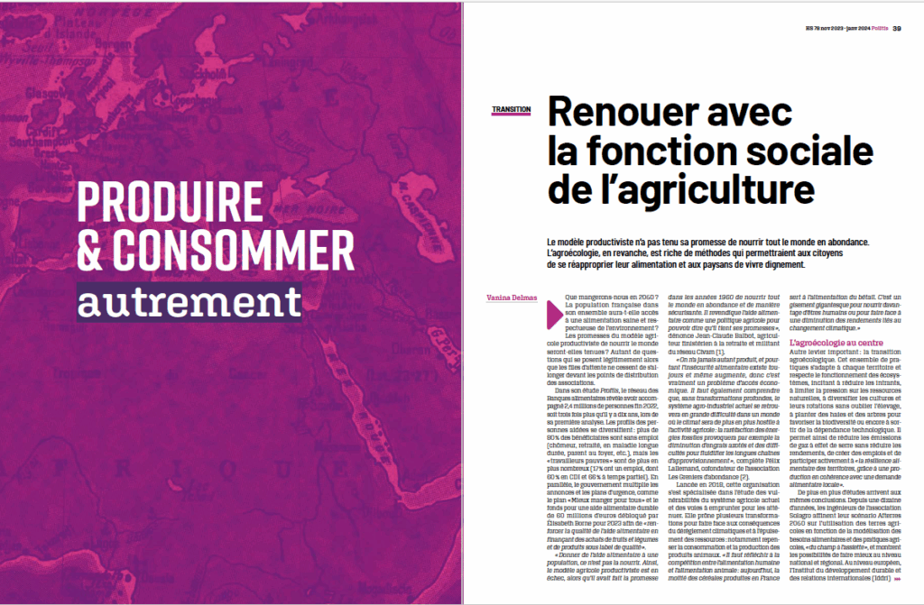 Direction artistique, illustration de couverture, maquette, iconographie, exécution, suivi de fabrication du hors-série 78 « Faim du monde et soifs d’alternatives » Politis