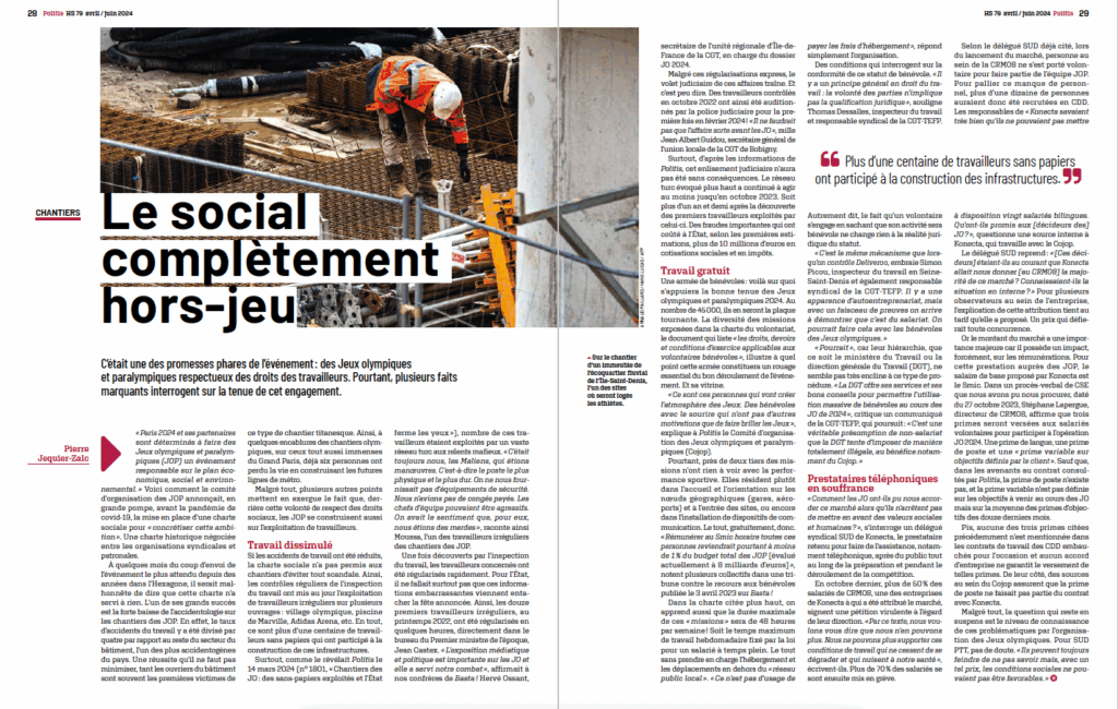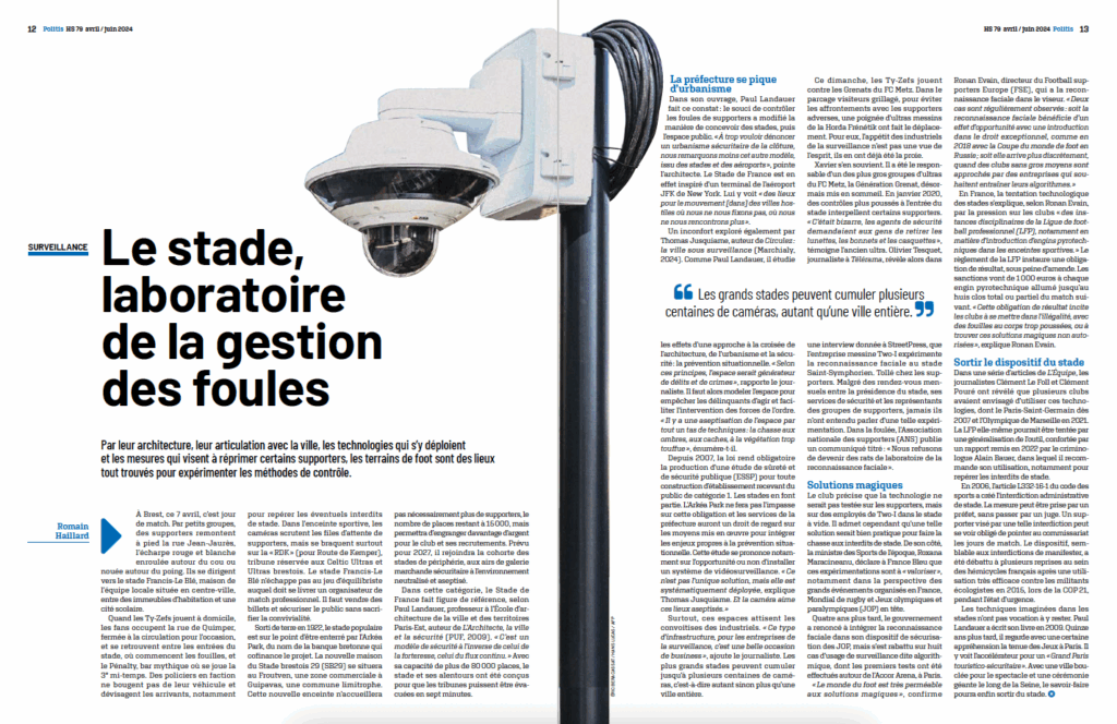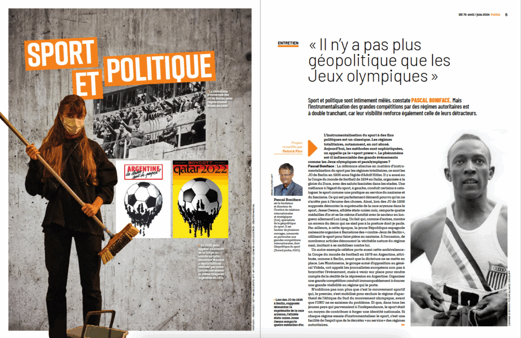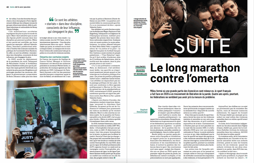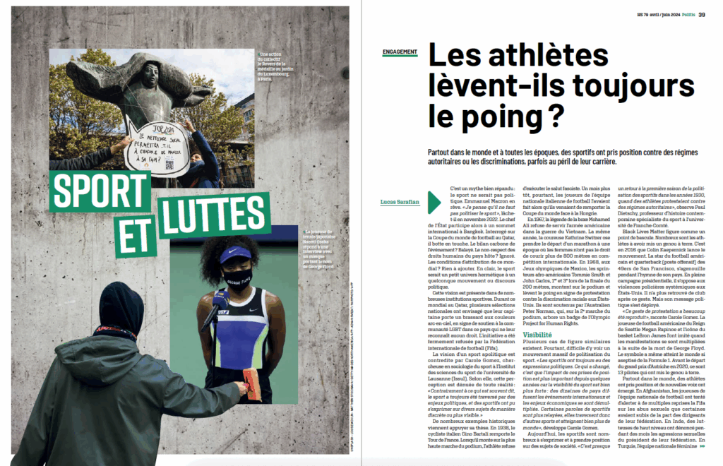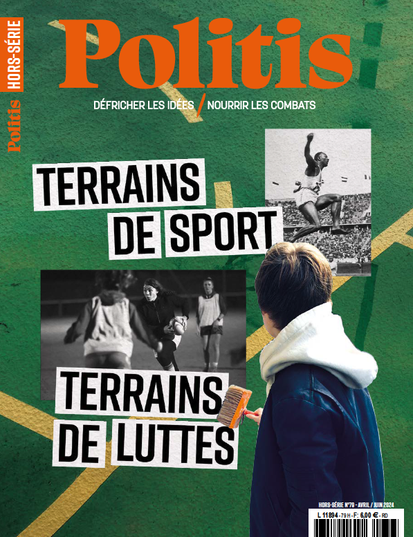 Direction artistique, illustration de couverture, maquette, iconographie, exécution, suivi de fabrication du hors-série 79 « Terrains de sport, terrains de luttes » Politis