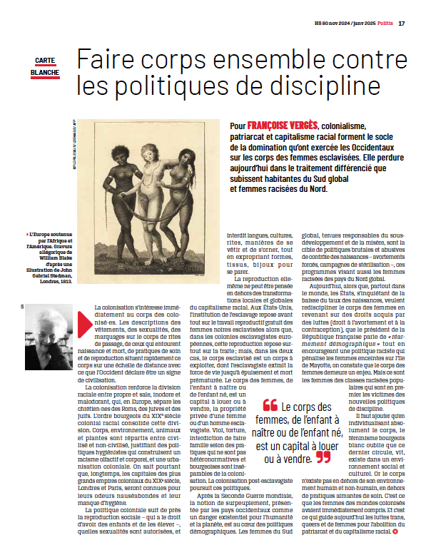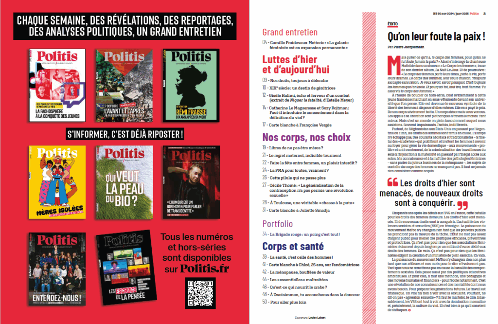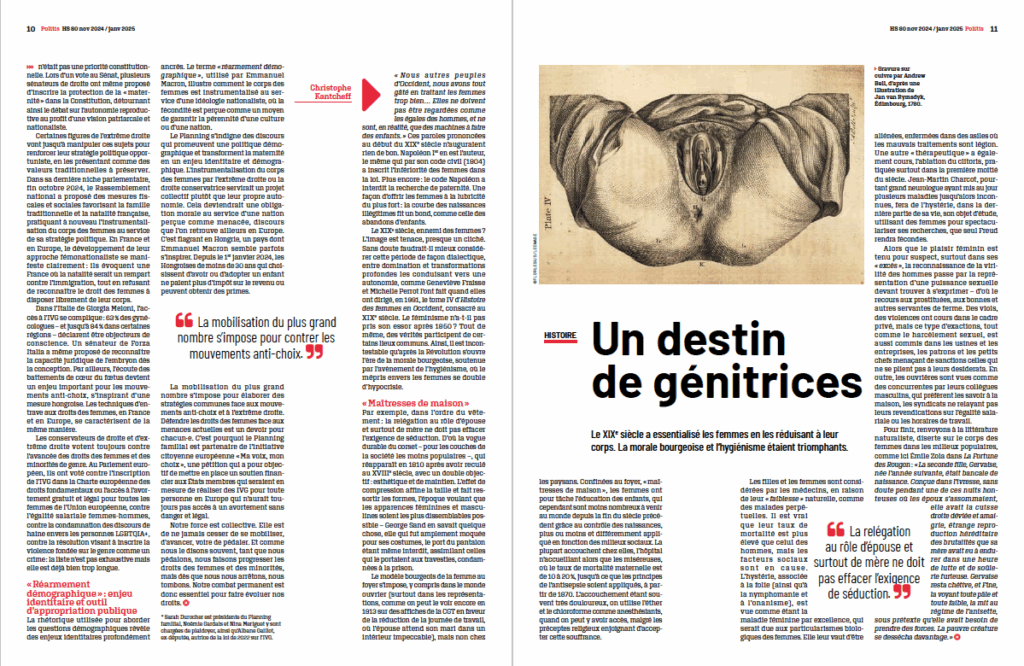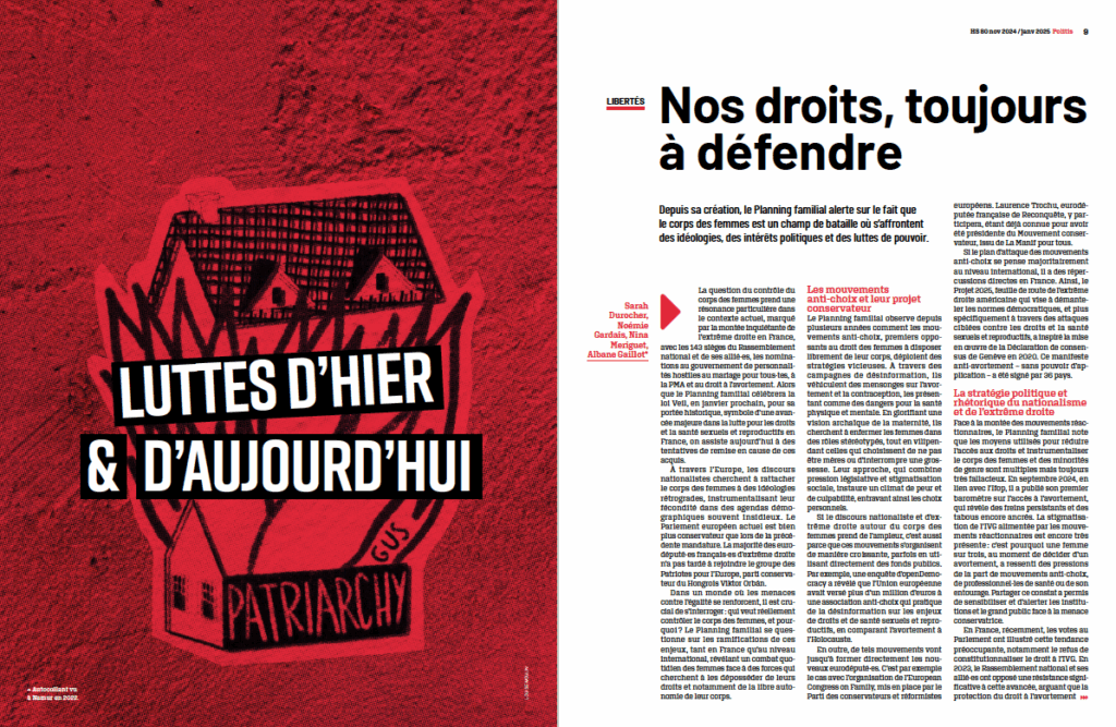 Direction artistique, illustration de couverture, maquette, iconographie, exécution, suivi de fabrication du hors-série 80 « 30 ans après la Loi Veil. Des corps et des femmes » Politis