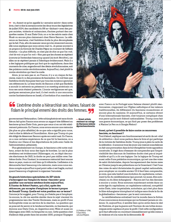 Direction artistique, maquette, iconographie, exécution, suivi de fabrication du hors-série 81 « Fascisme. Stopper l’épidémie » Politis